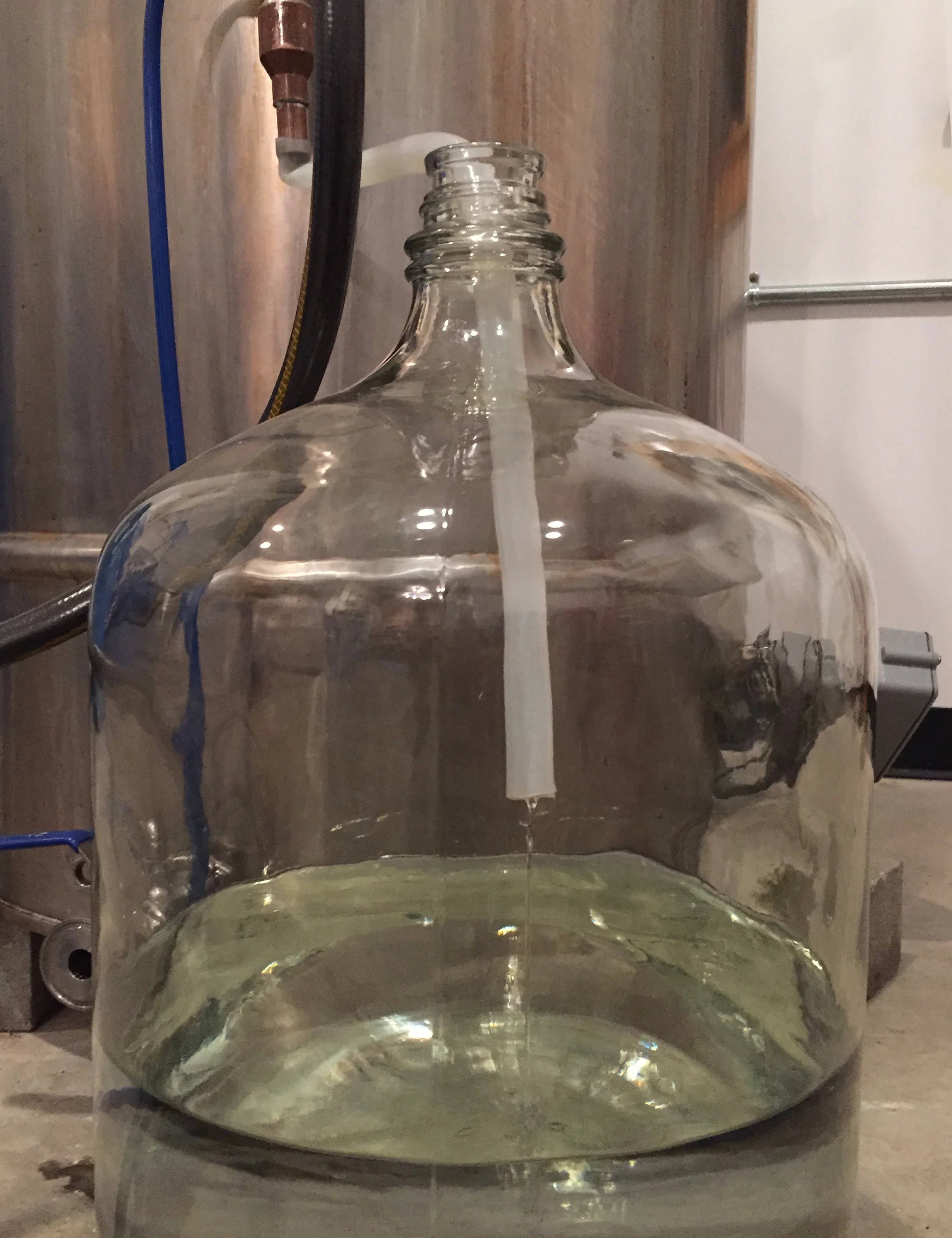 Below is a quick snap of a process that goes on nearly 24 hours a day. This is our Triple Distilled Craft Spirits right as it drips from the distiller, and right before we pour it into a barrel for aging.