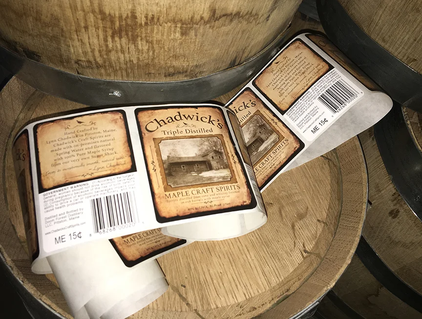 The bottling and labeling of Chadwick's Maple Craft Spirits is by no means a giant factory operation, but even a little mechanical help goes a long way.